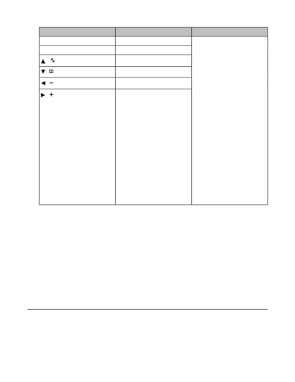 The feature currently assigned to the selected key is highlighted and followed by a left arrow.