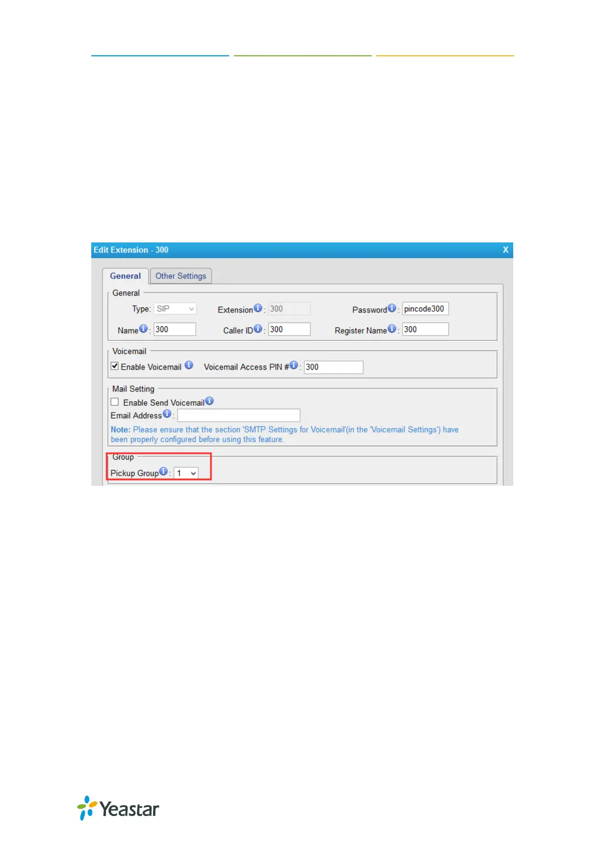 Pickup group can be set on extension edit page. Extensions that are in the same