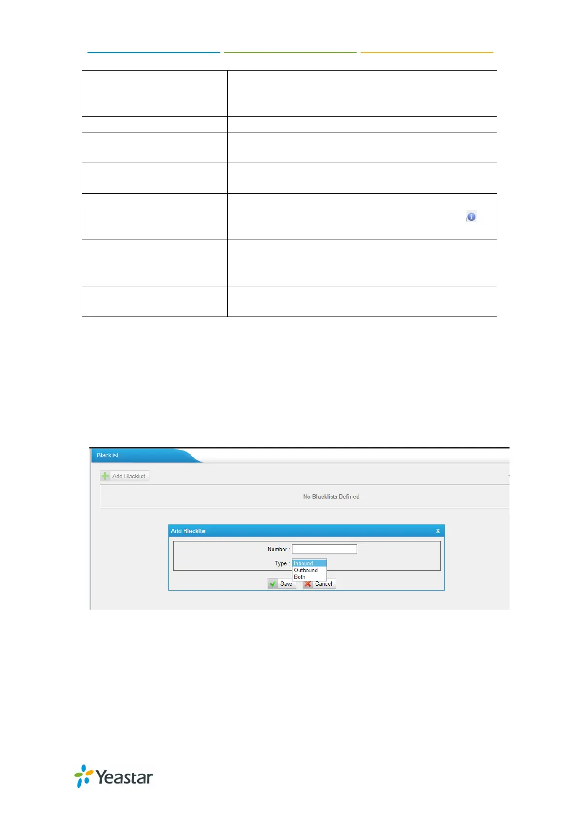 incoming/outgoing call is listed in the number blacklist, the caller will hear the