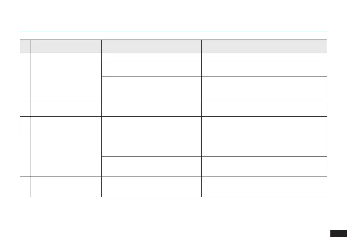 No. Malfunction Possible Causes Solutions