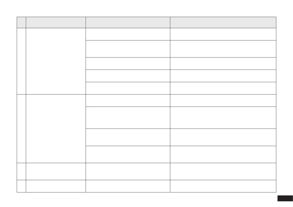 N°. Mauvais fonctionnement Causes possibles Solutions