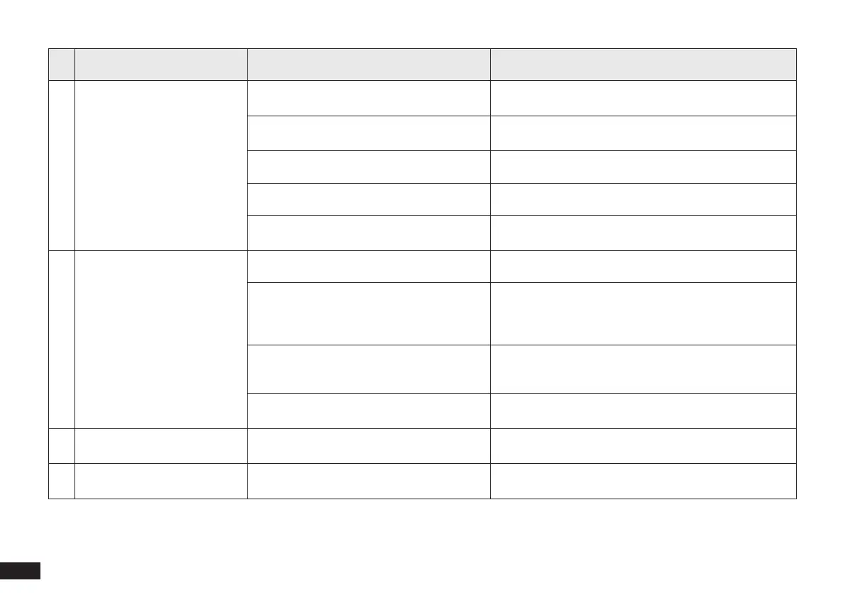 No. Malfunction Possible Causes Solutions
