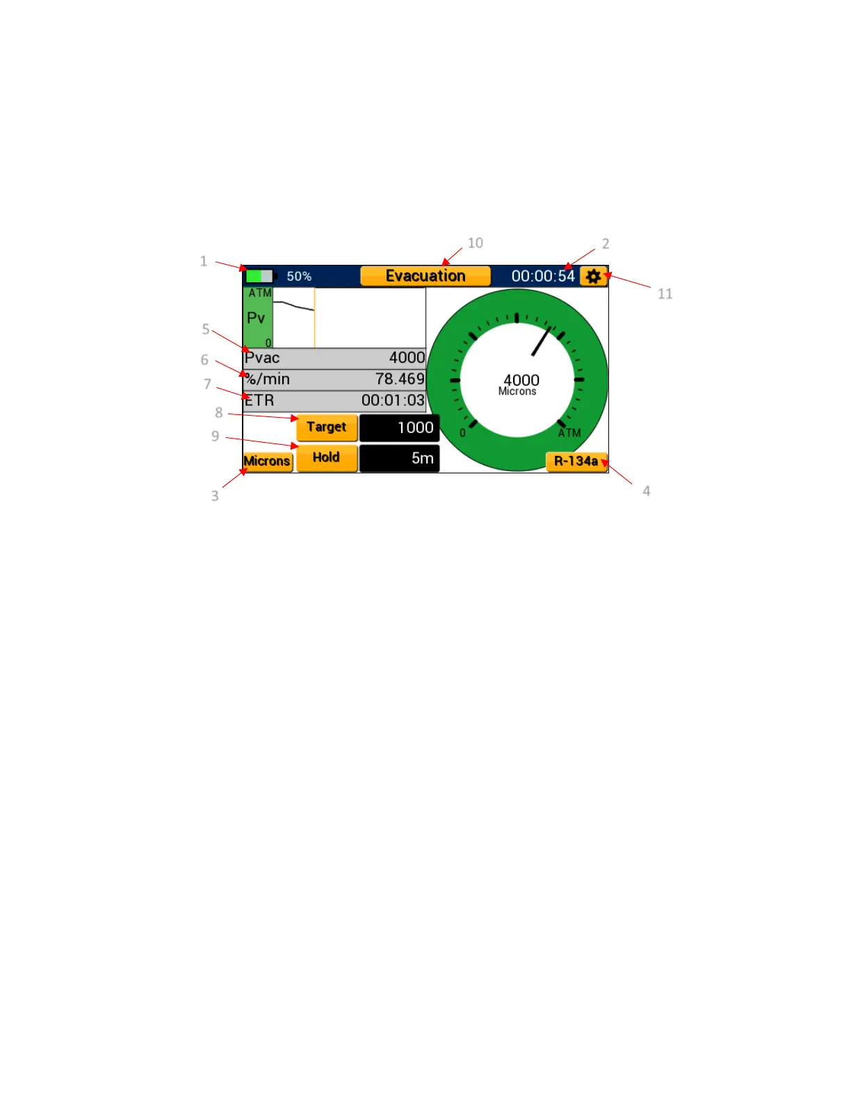 Evacuation mode features a fully functional digital analog vacuum gauge on the right side of the