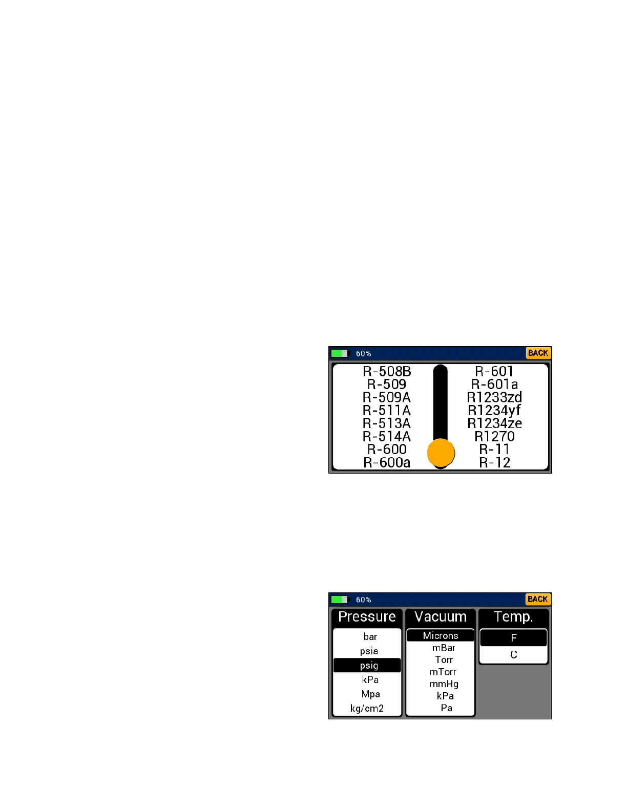 in general settings or as the refrigerant button label on any modes screen. To exit the refrigerant
