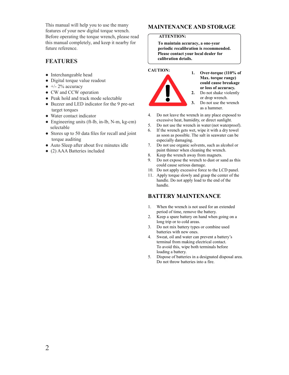● Engineering units (ft-lb, in-lb, N-m, kg-cm)