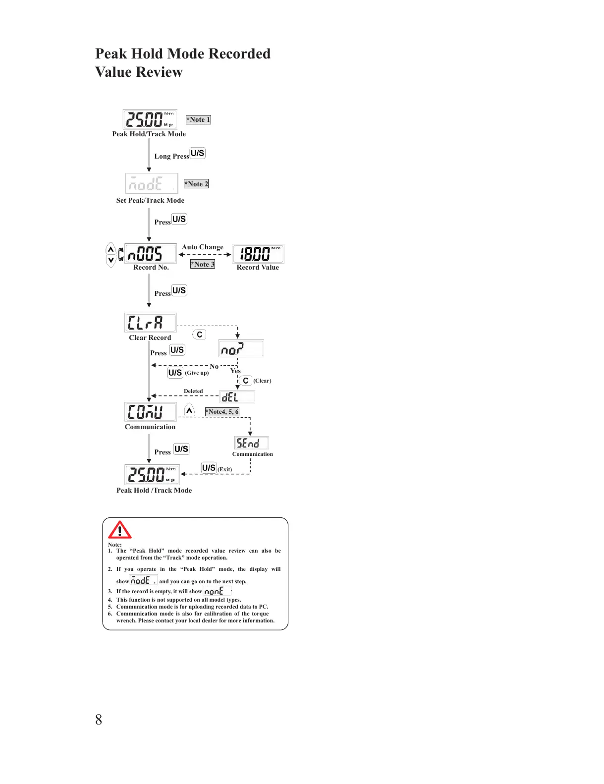 1. The “Peak Hold” mode recorded value review can also be