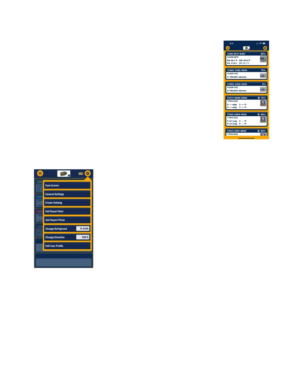 Datalog, Change Refrigerant, Change Elevation, and Edit User Profile. First,