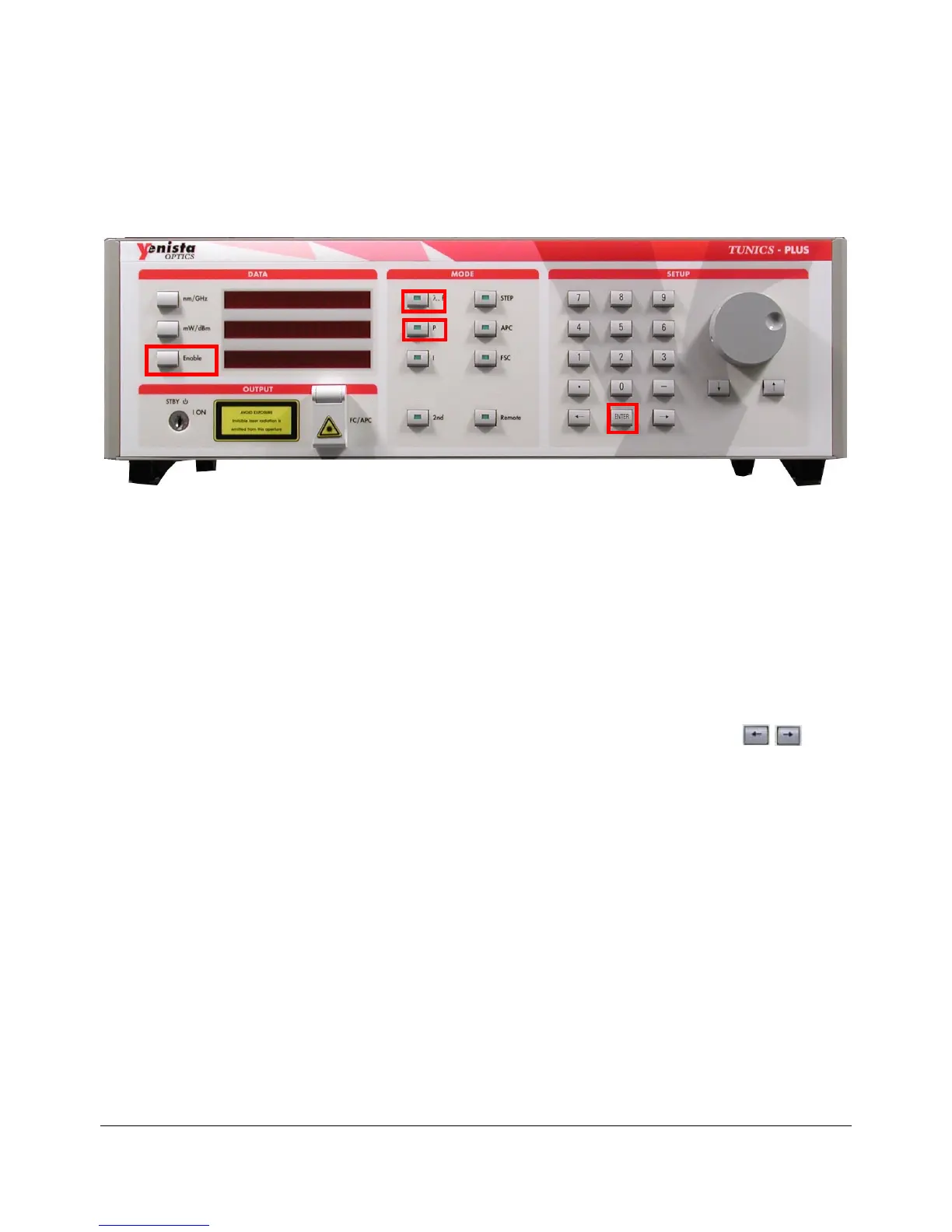 4. Press the Enable key in the DATA area to enables the optical output (see