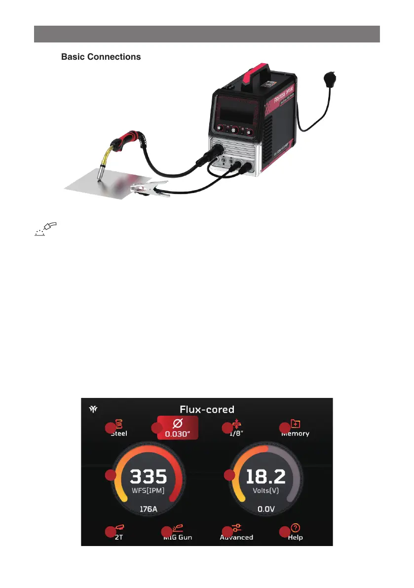 Ÿ Press the gun trigger or hold Value Adjustment Knob to load the wire through the gun.
