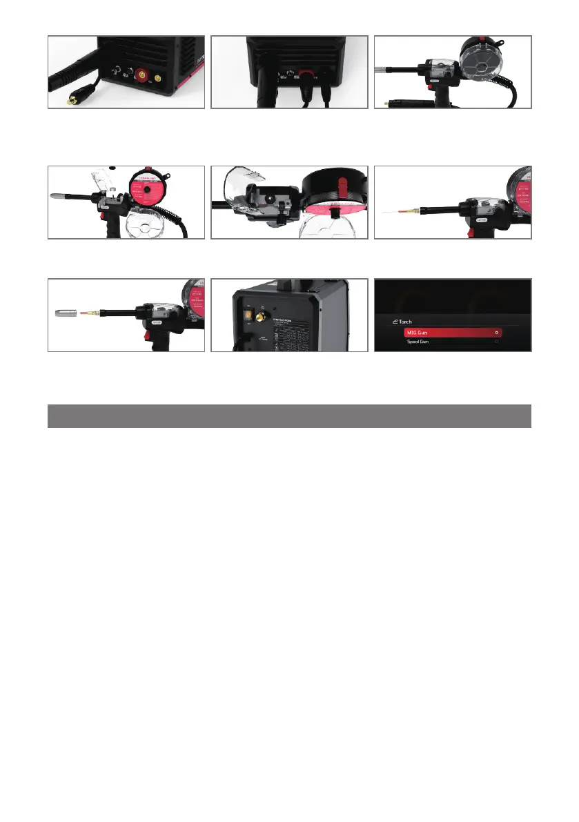 1. Press the torch trigger to ignite the arc, and the machine will feed wire at the selected welding speed.
