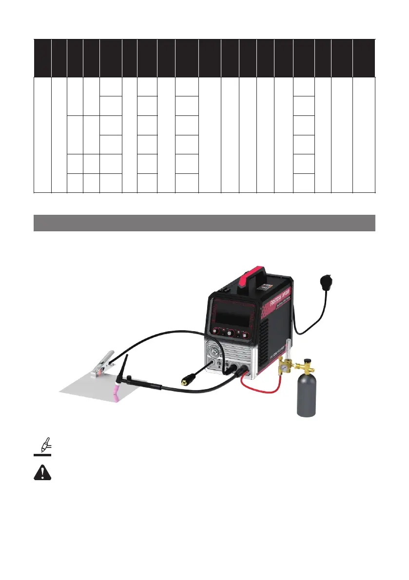 Ÿ Connect the TIG torch gas line to the gas regulator (use 100% Argon gas only).Turn on the gas at the regulator, check for gas