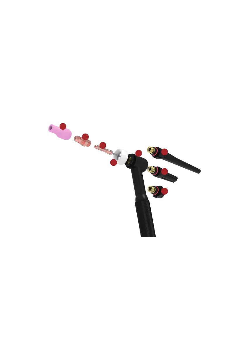 Collet (4): Holds the tungsten electrode in place within the Torch Head (6).