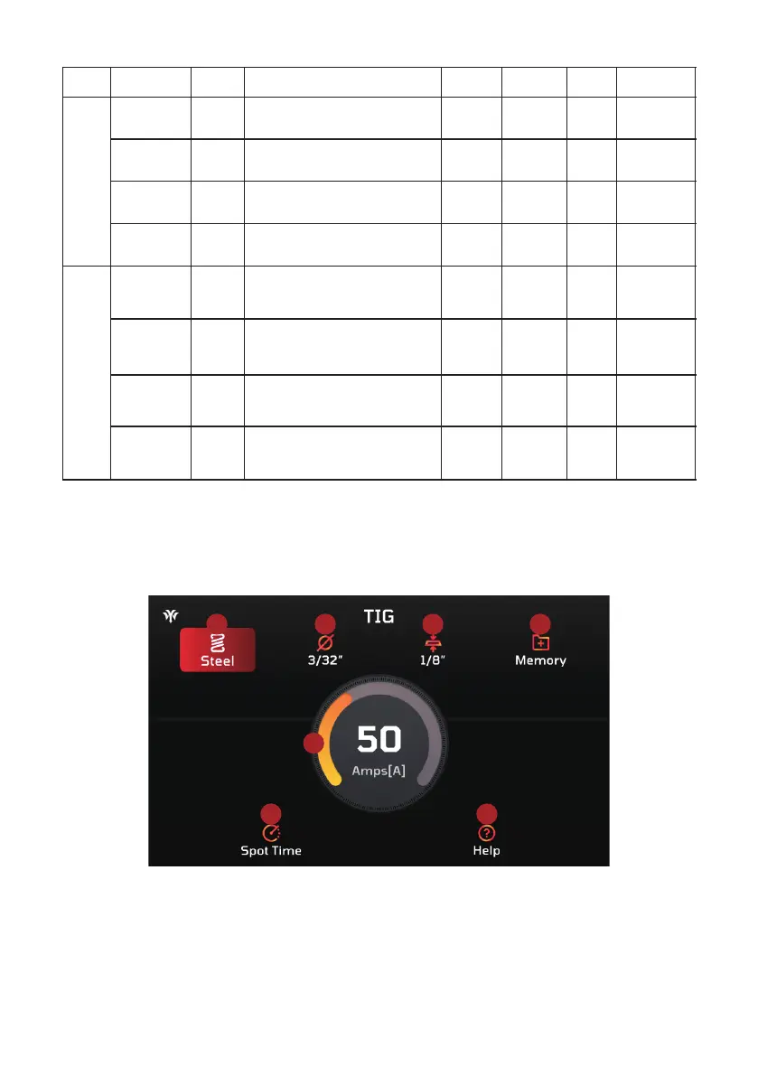 7. Amperage Display: Shows the selected welding amperage on the main screen.