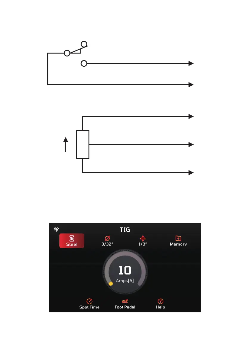 recognize it. The system will switch to TIG welding process and enable foot pedal control for welding functions.