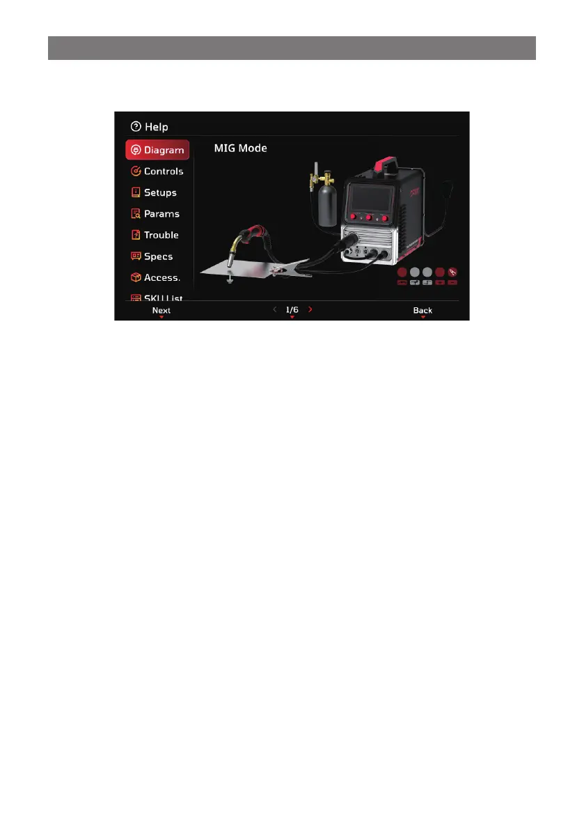 This welding machine comes equipped with a comprehensive Help Guide to assist users in setup, operation, and maintenance. The