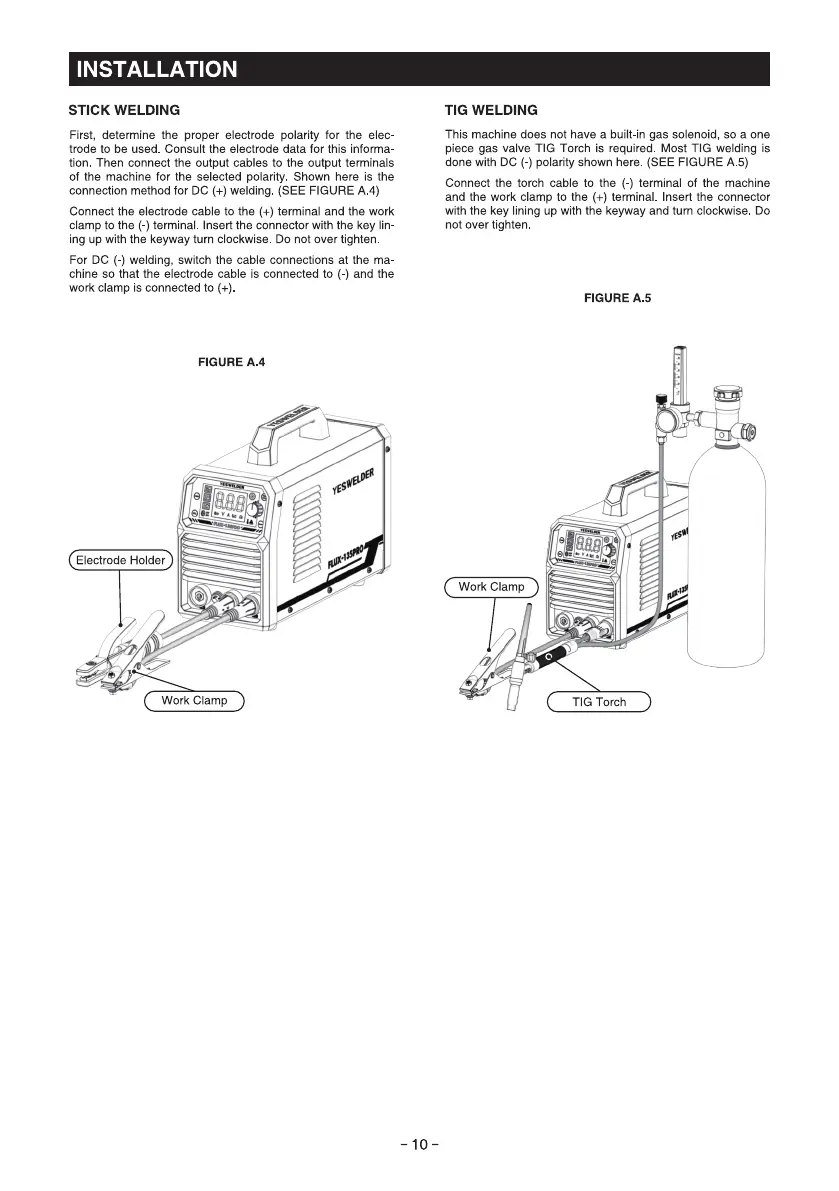 connection method for DC (+) welding (SEE FIGURE A 4)
