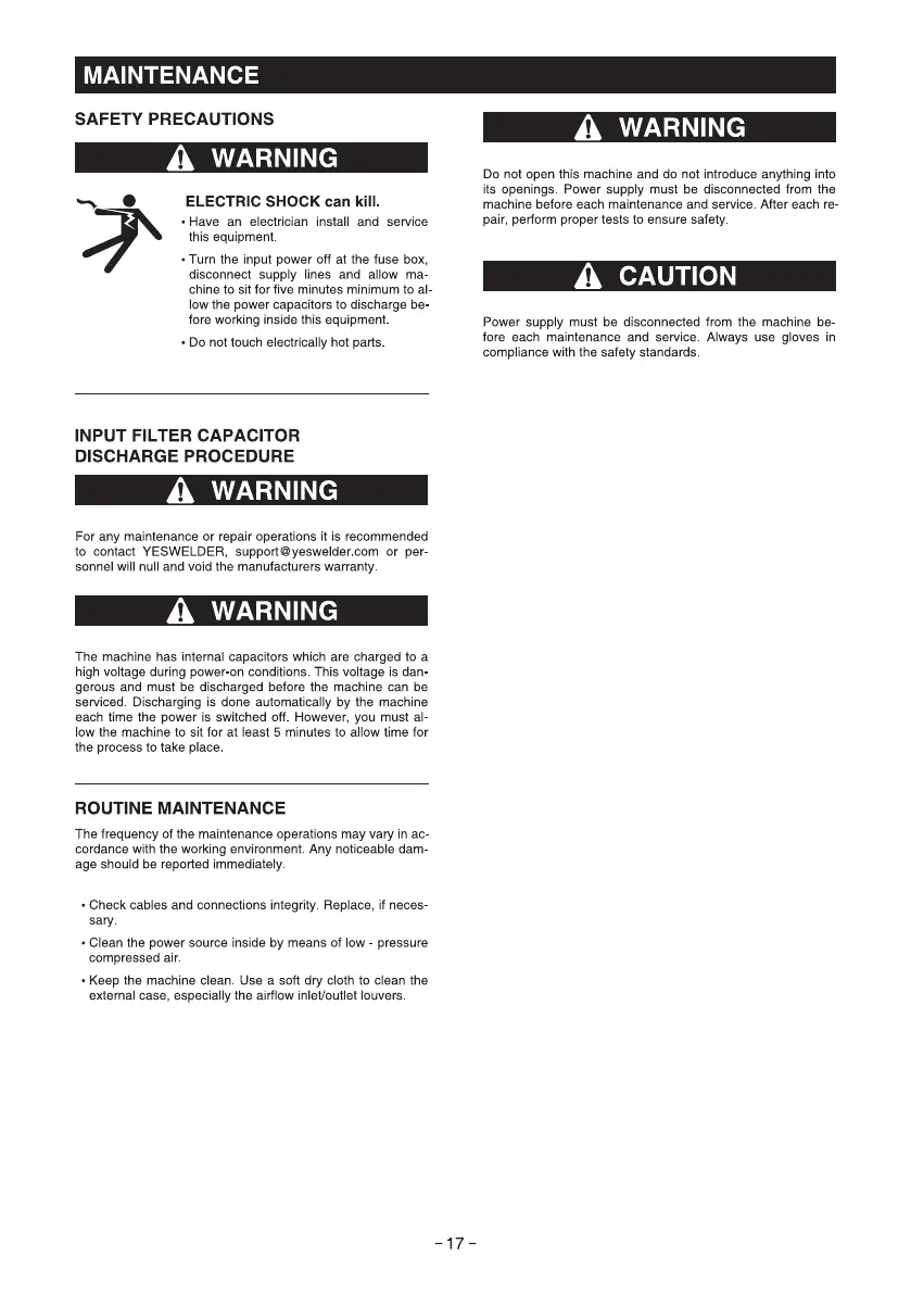 For any maintenance or repair operations it is recommended