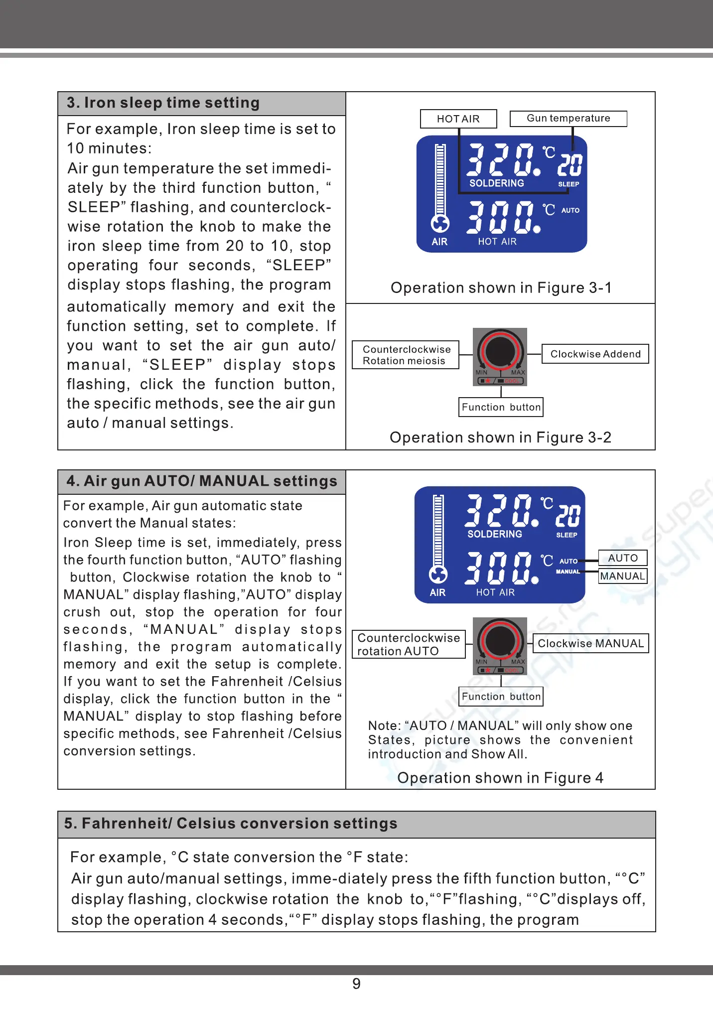 Air gun auto/manual settings, imme-diately press the fifth function button, C