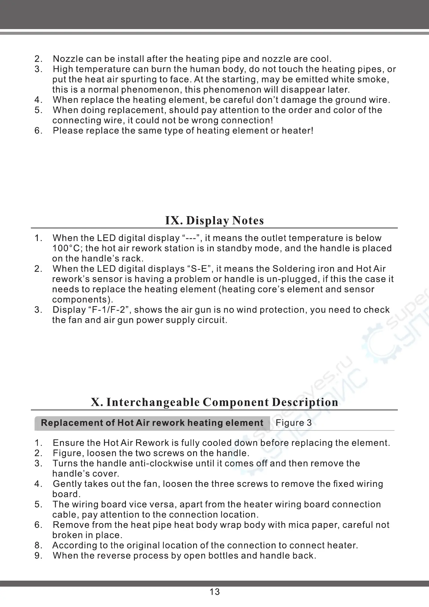 Ensure the Hot Air Rework is fully cooled down before replacing the element.
