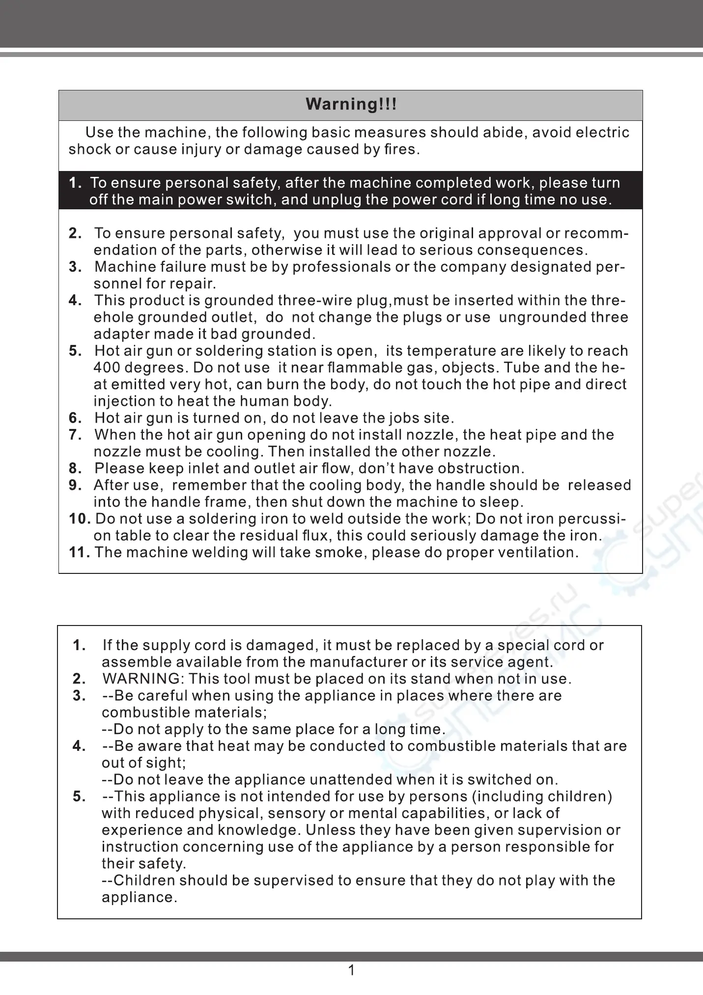 Hot air gun or soldering station is open, its temperature are likely to reach