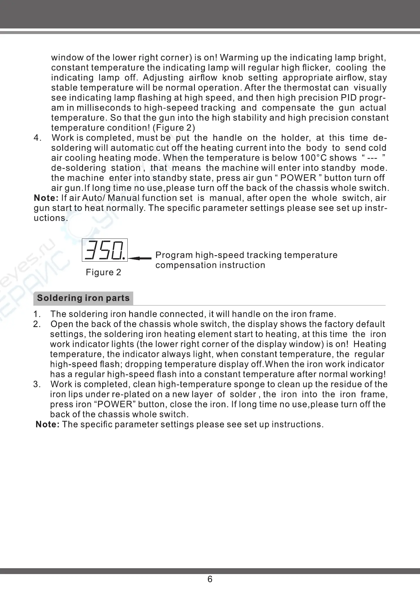 settings, the soldering iron heating element start to heating, at this time the iron