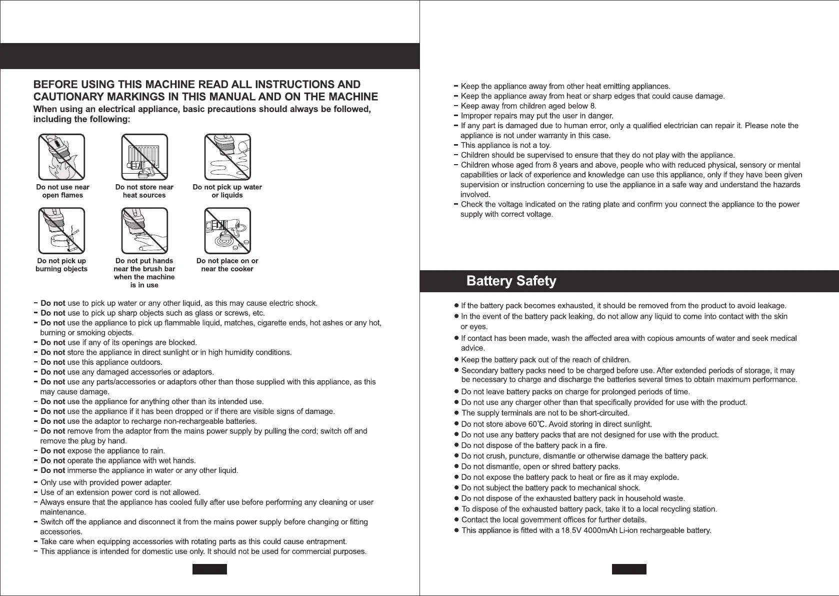 YISORA V110 - Important Safety Instructions & Warnings; Battery Safety