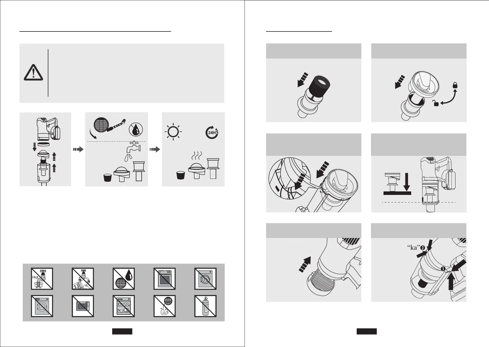 1. Separe el motor principal y el cubo de polvo, saque el HEPA del motor principal y el