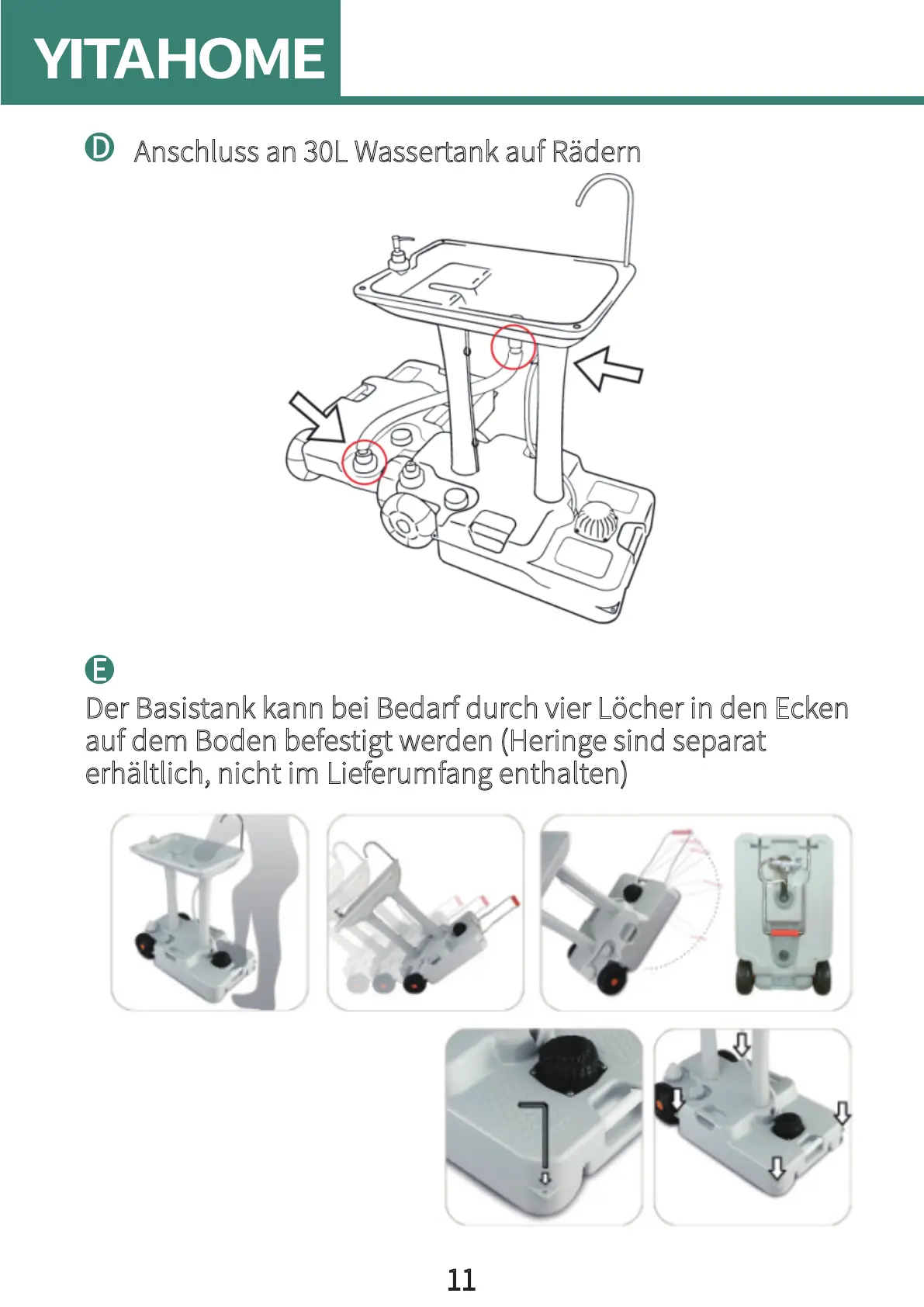 Anschluss an 30L Wassertank auf Rädern