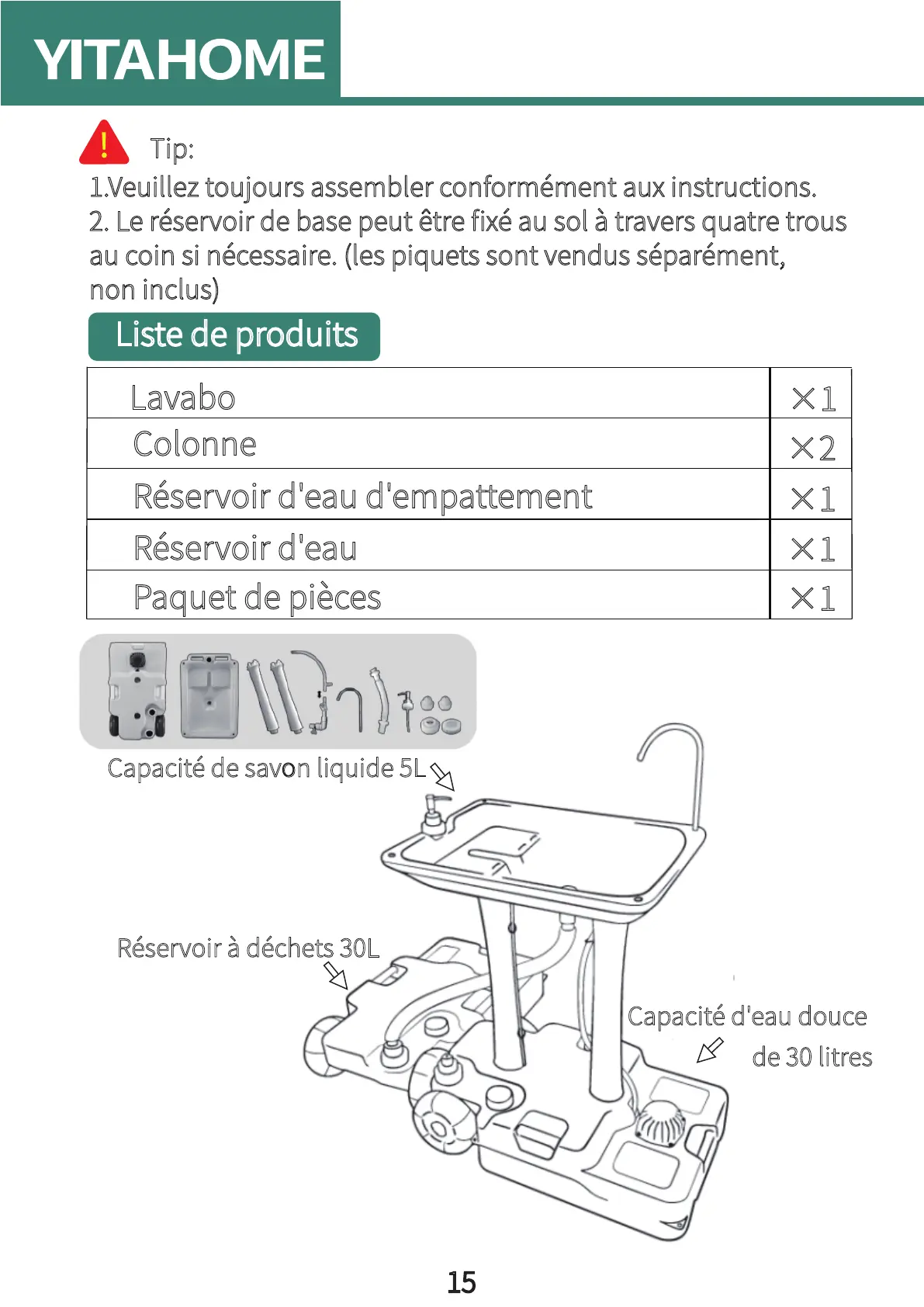 1.Veuillez toujours assembler conformément aux instructions.