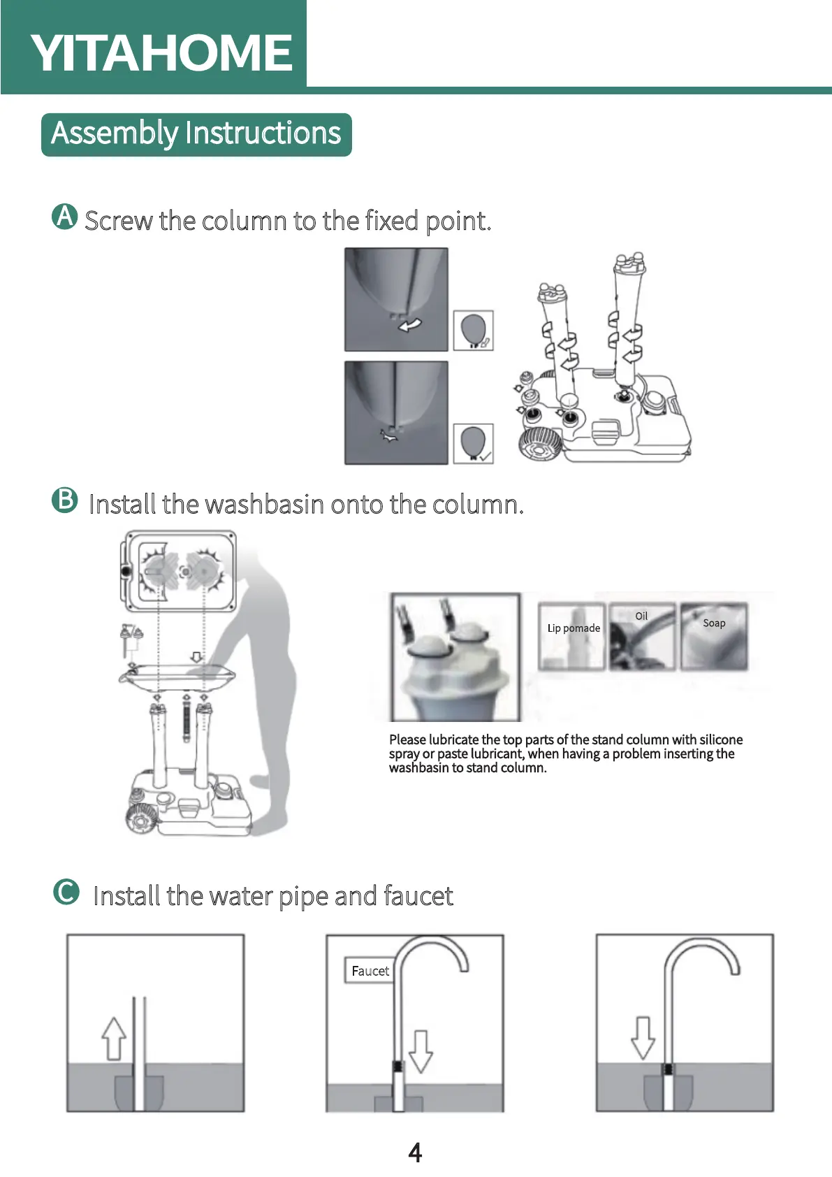 washbasin to stand column.