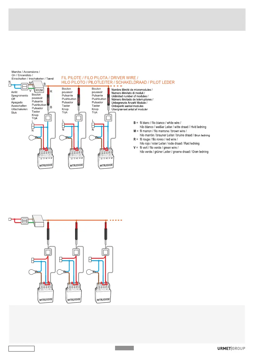 GB: Centralisation with pushbuttons common to live. 4-wire installation.