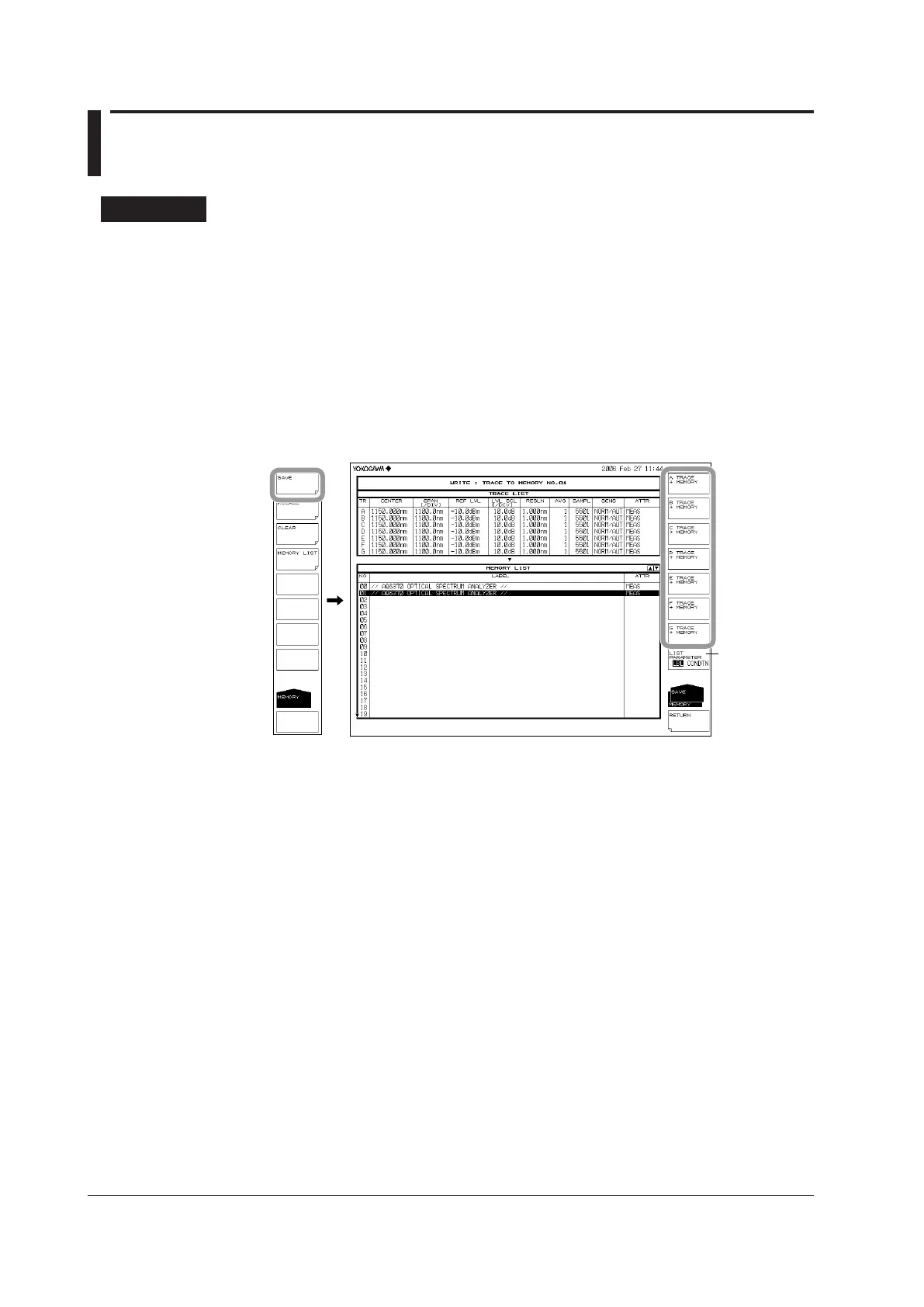 Press the SAVE soft key. The internal memory list and trace list are displayed.