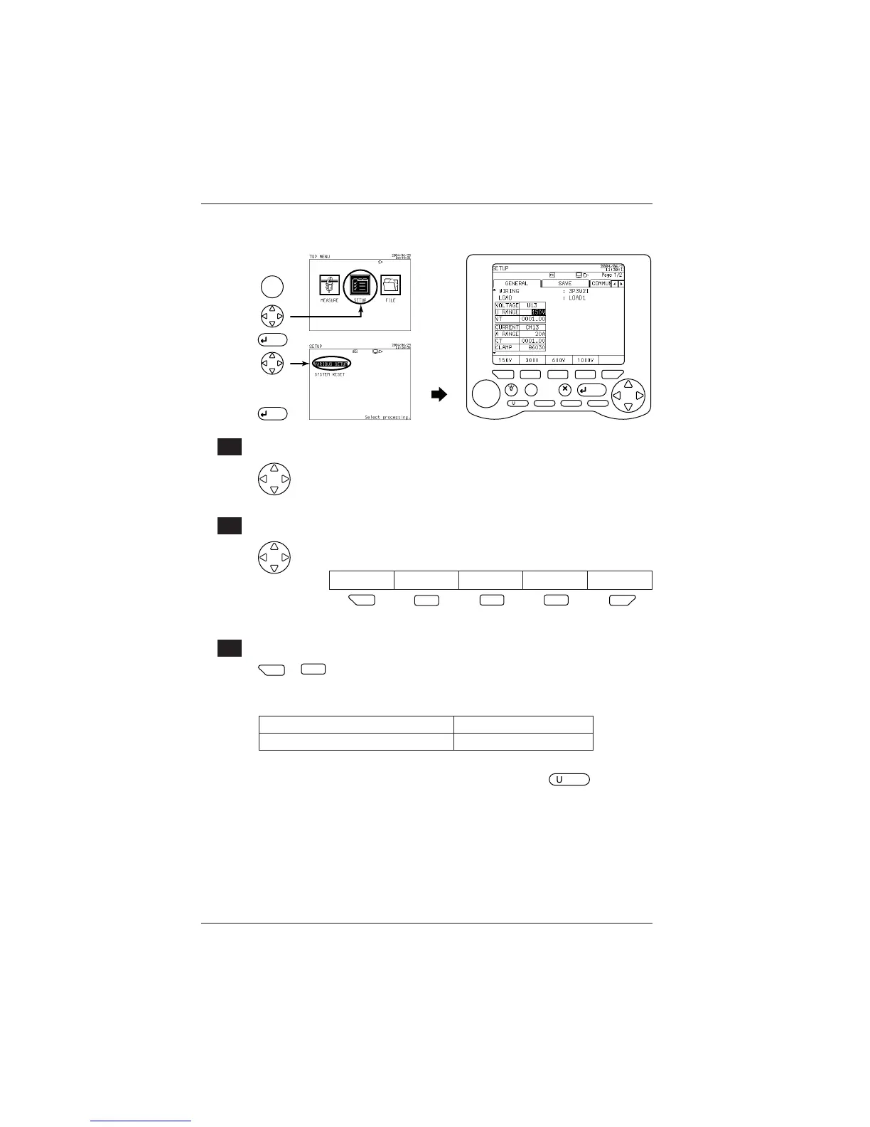Using the up and down cursor keys, select U RANGE (highlighted).