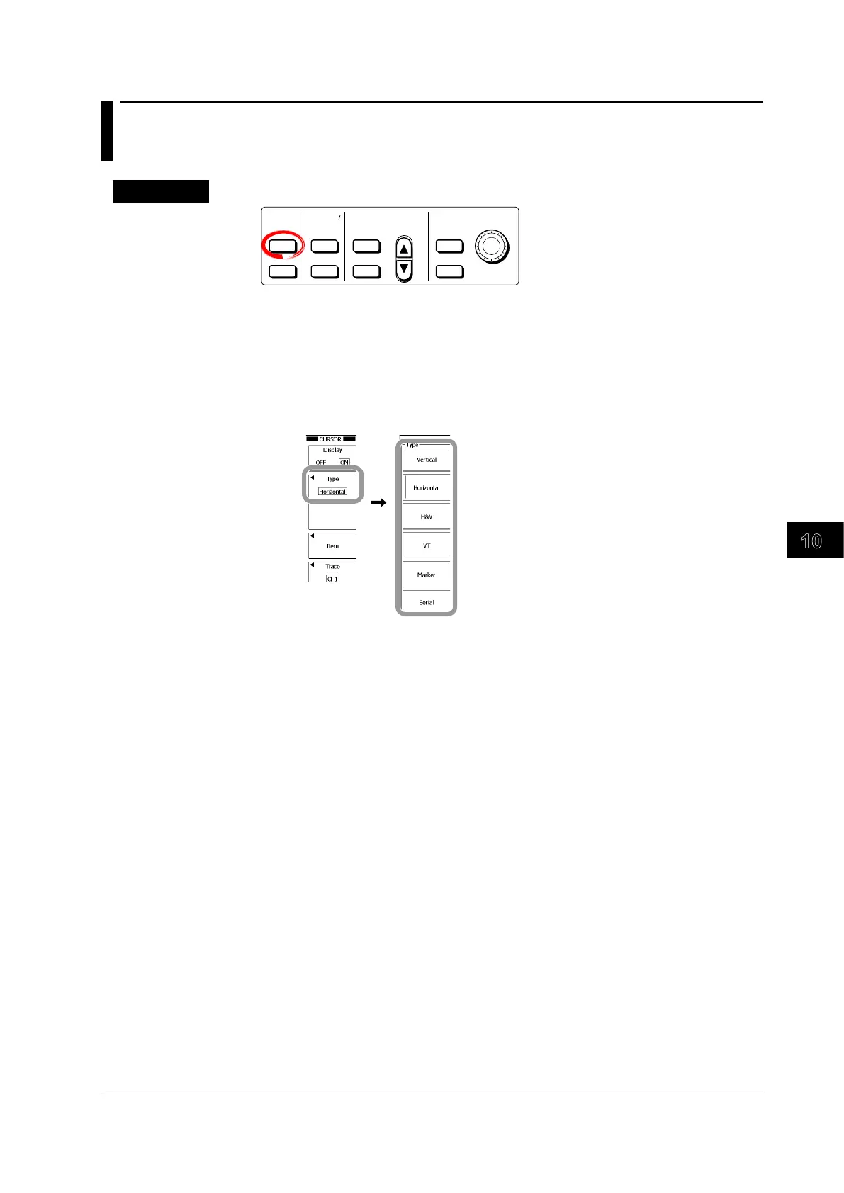 Press the appropriate soft key from Vertical to Serial to select the cursor type.