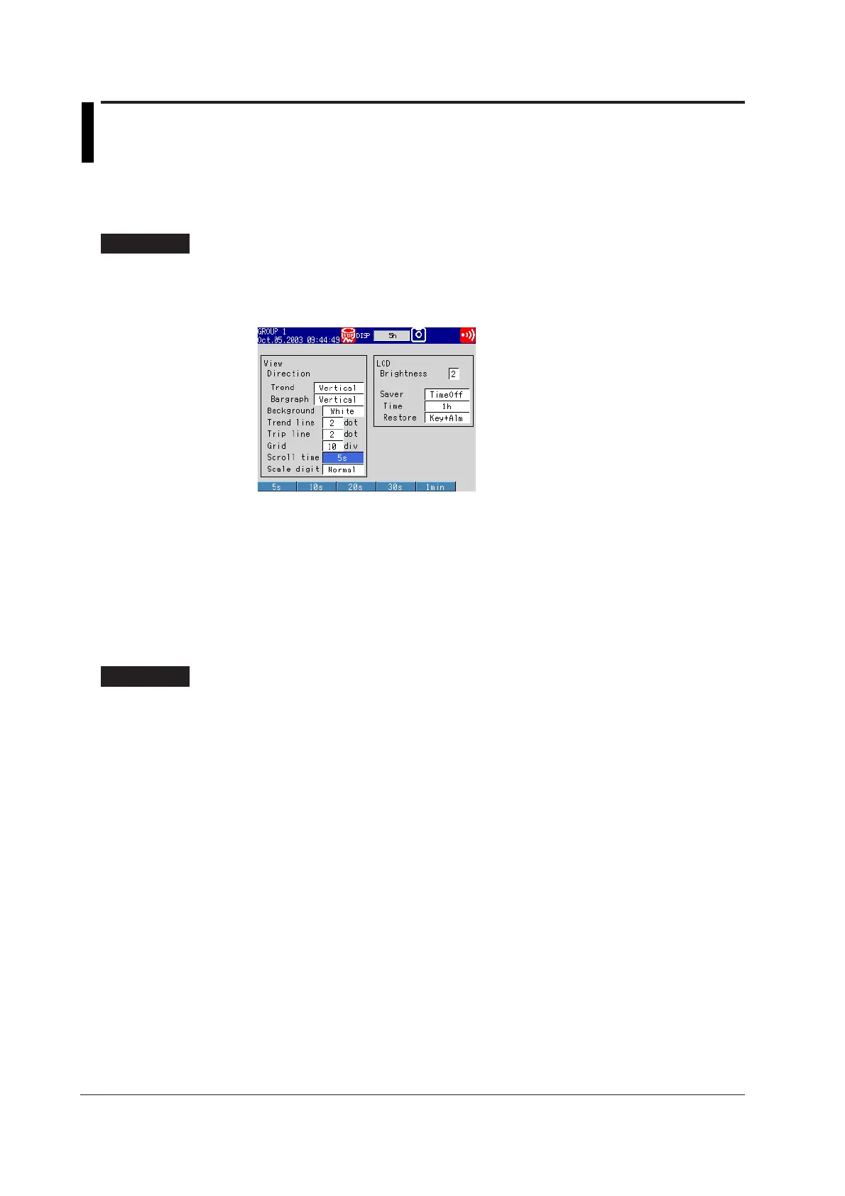 1. Use the arrow keys to move the cursor (blue) to [Scroll time].