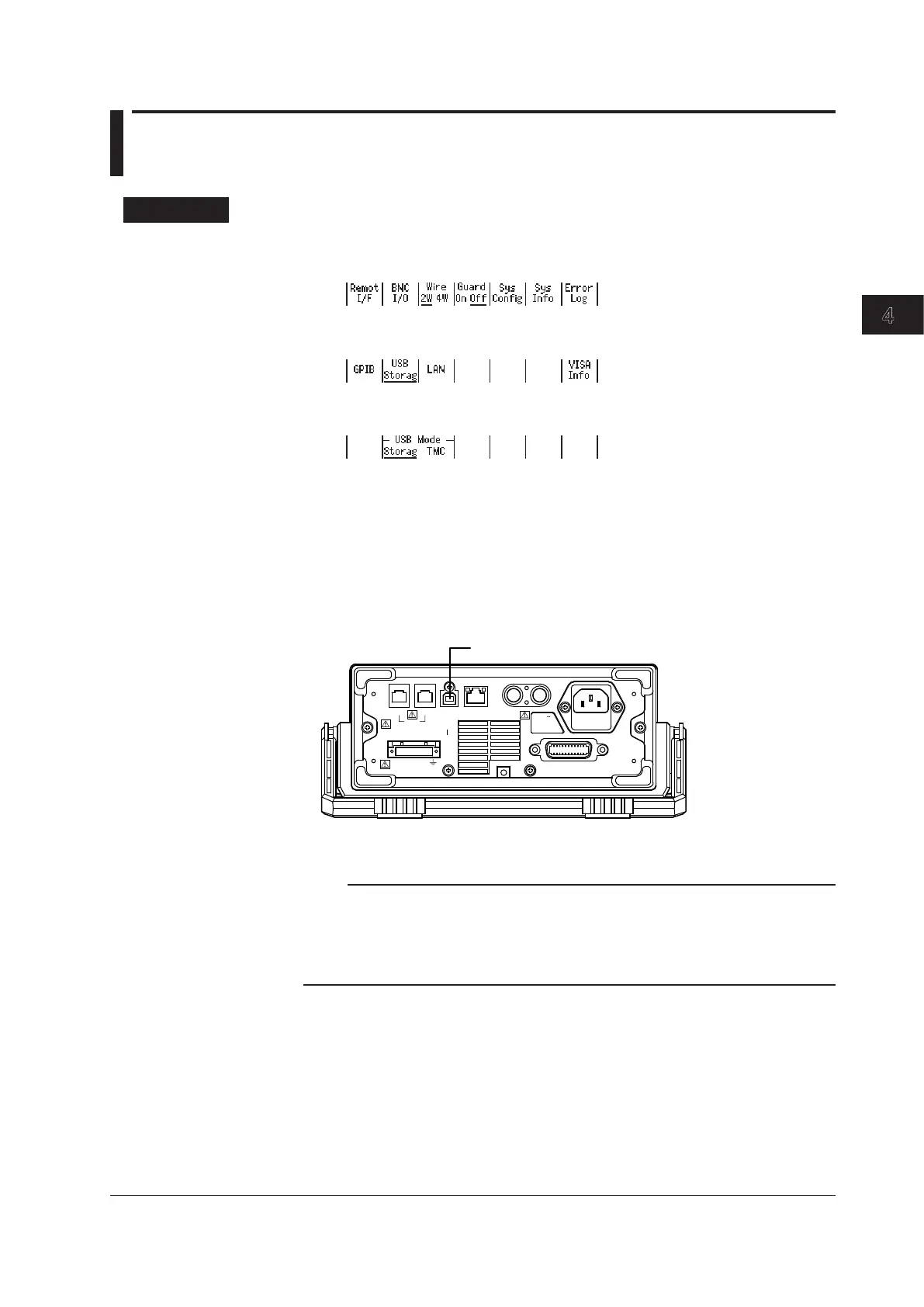 • You cannot use the USB storage feature if the USB-TMC command control feature (see