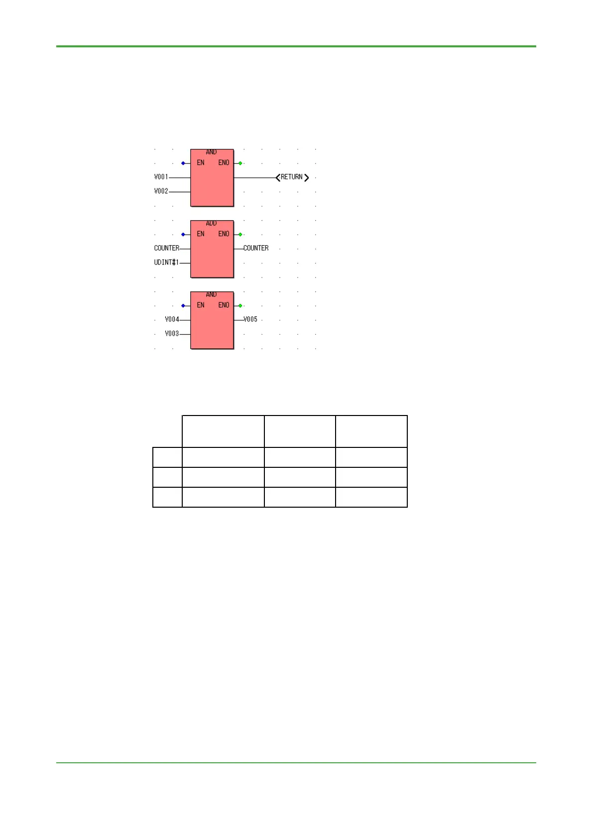 In this example, when the topmost AND is true, processing of the program ends so
