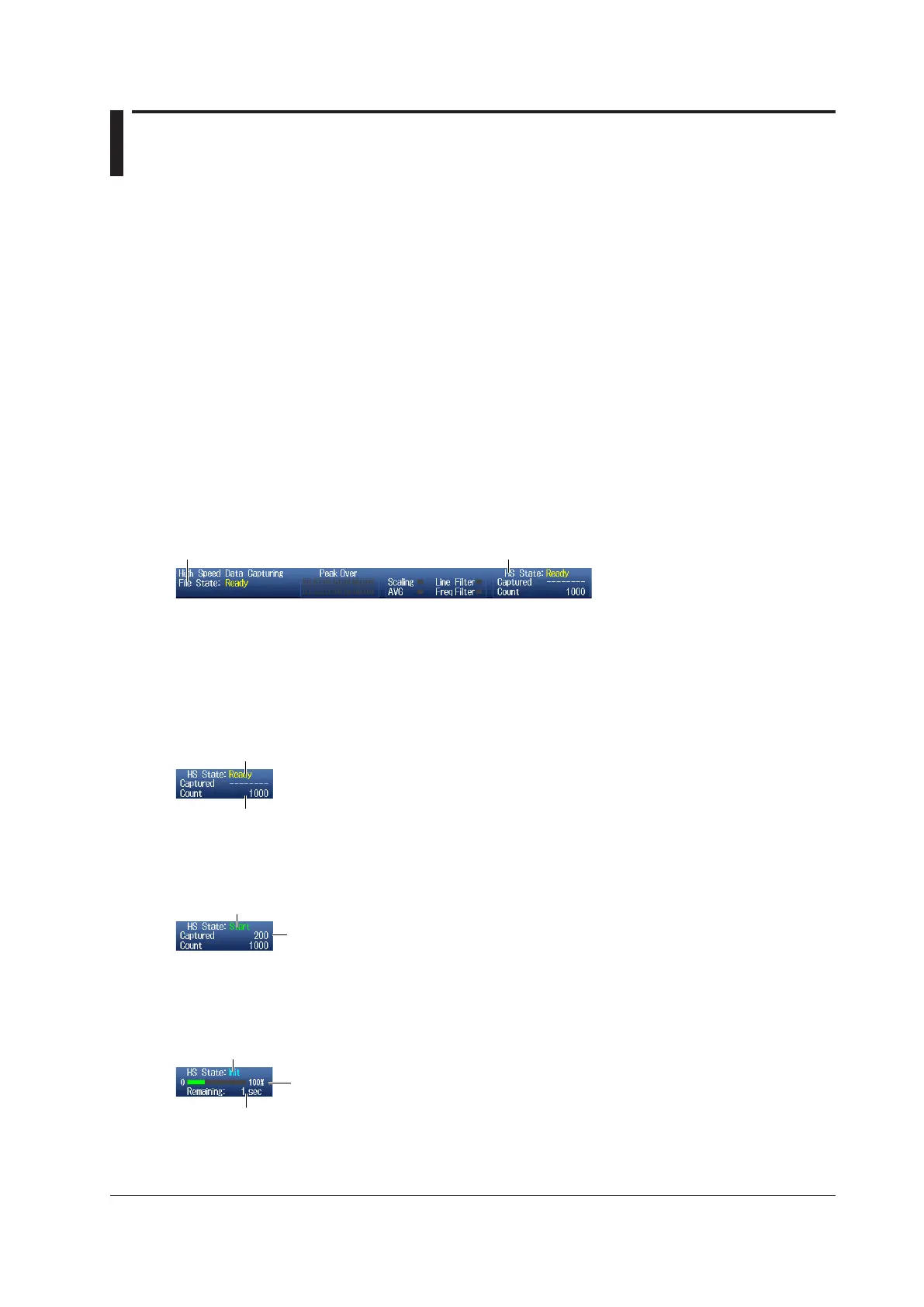• “Ready” appears when high speed data capturing has been reset and the WT1800 is ready to begin high