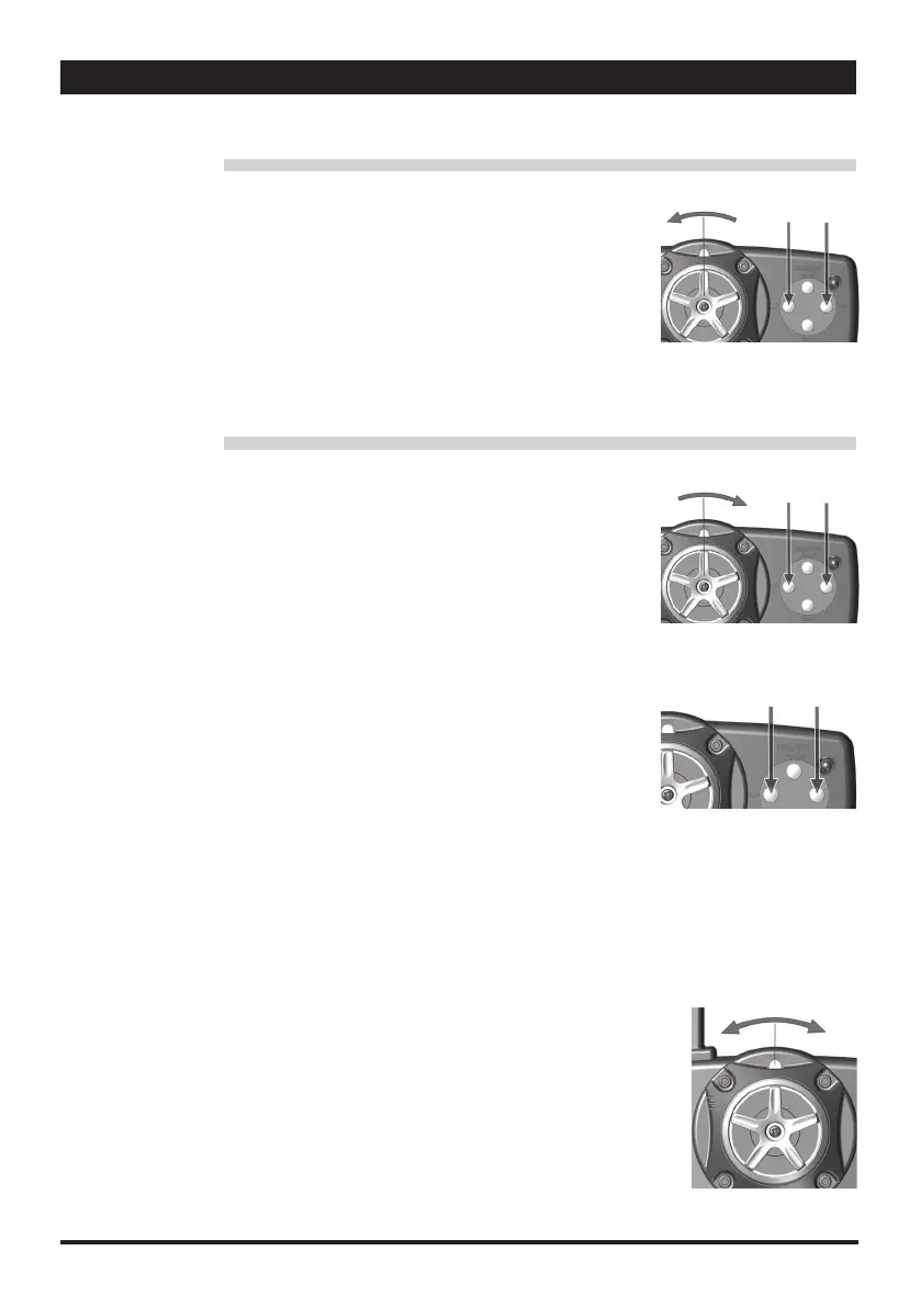 ★エンドポイントを上げる:ステアリングを左に目一杯切った状態で "ST/L+" ボタンを押します。