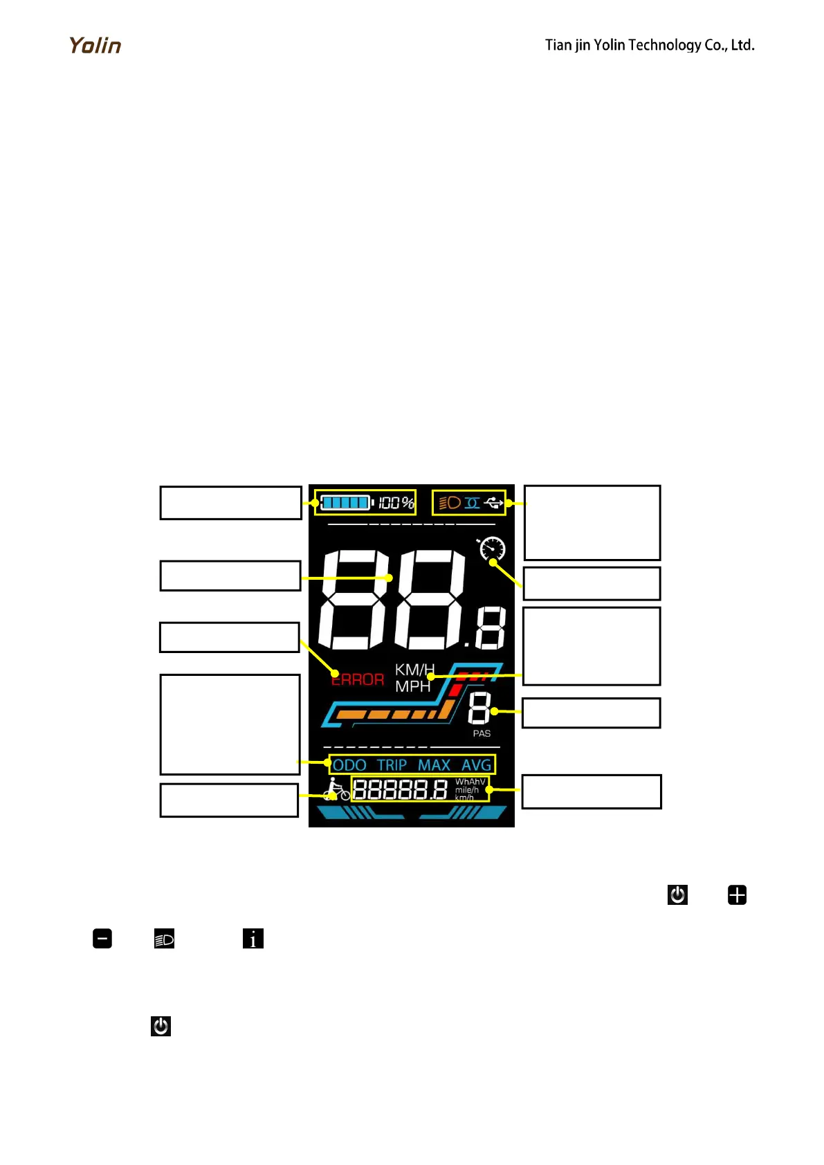 The YL90V display is equipped with five buttons on the corresponding operating unit: power on/off , plus ,