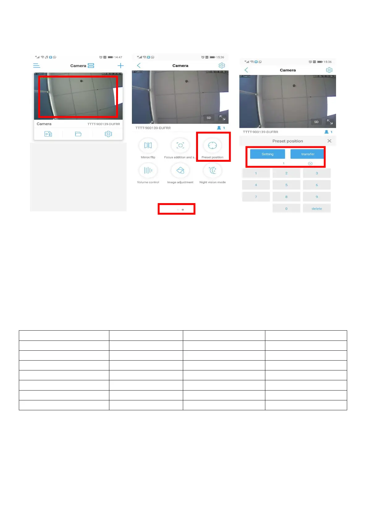 Adjust the camera rotation to the first point you want to monitor on the app; input "1" and Setting;