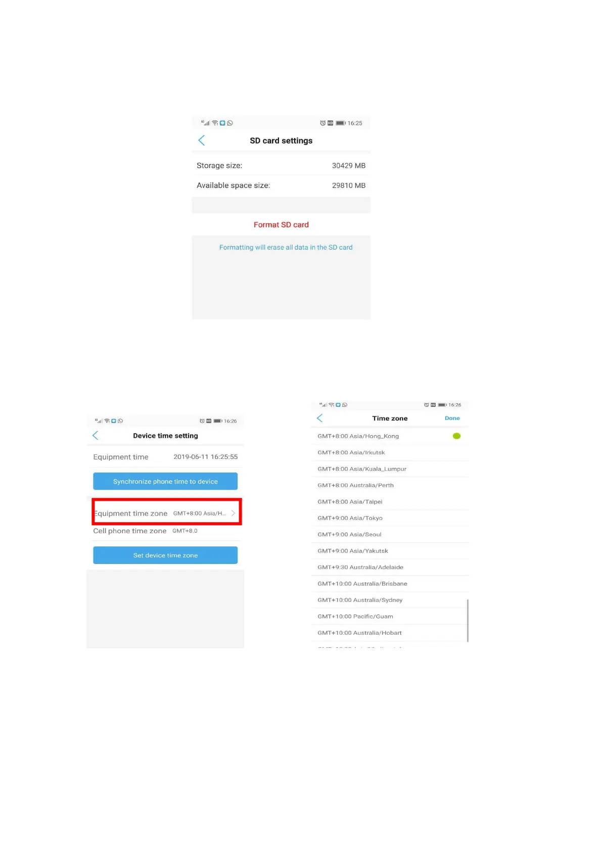 You can set up the time of camera here -- Synchronize phone time to device or choose the time zone.