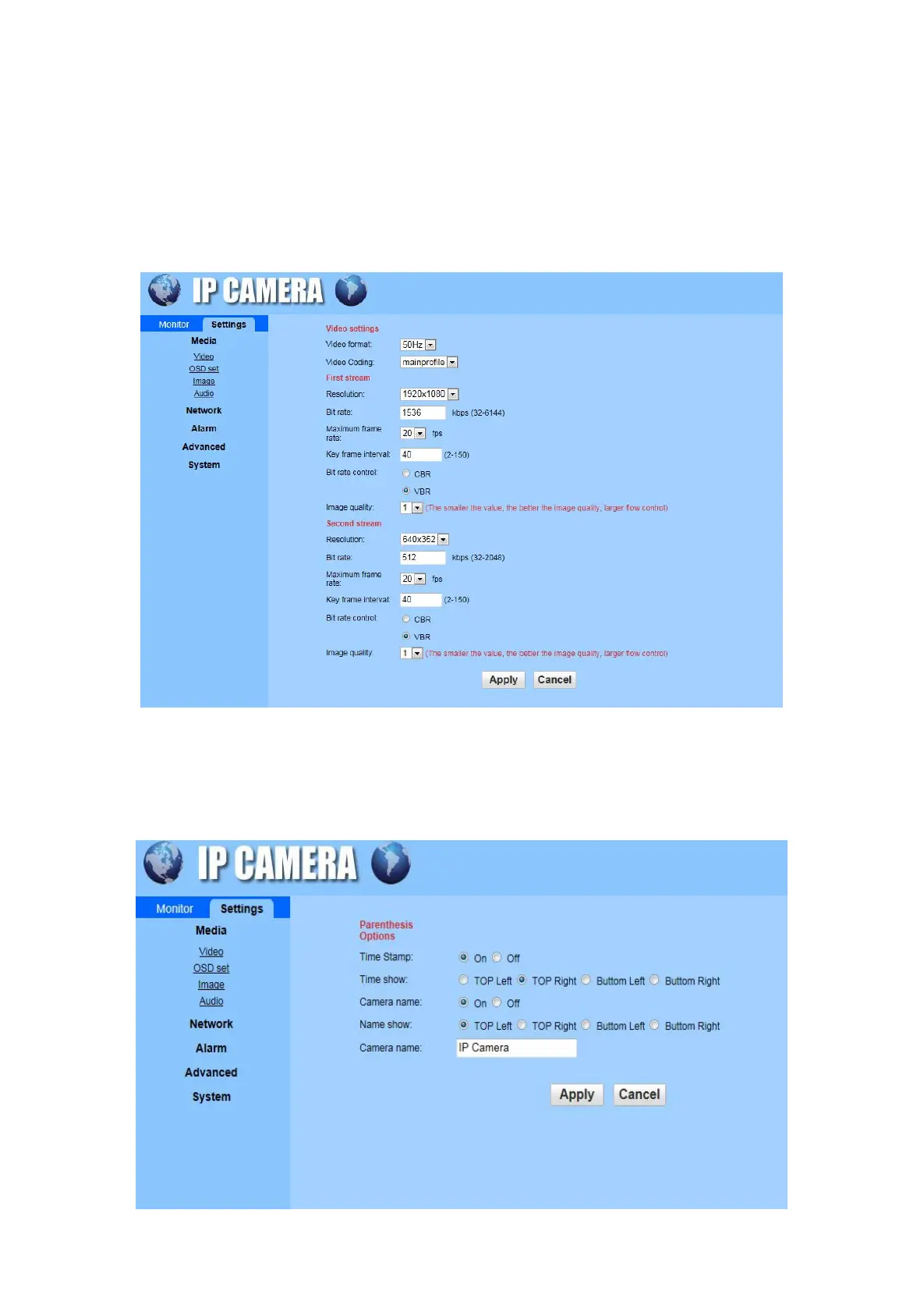 B) OSD Set: Set time stamp, time show, camera name and name show in this interface.