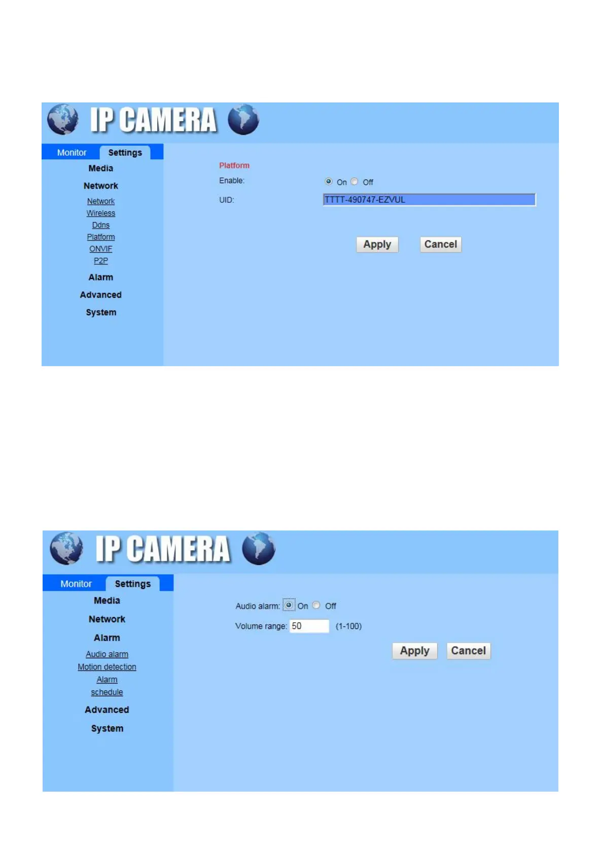 F) P2P: Enable this function, can watch video in Mobile App via add UID Number.
