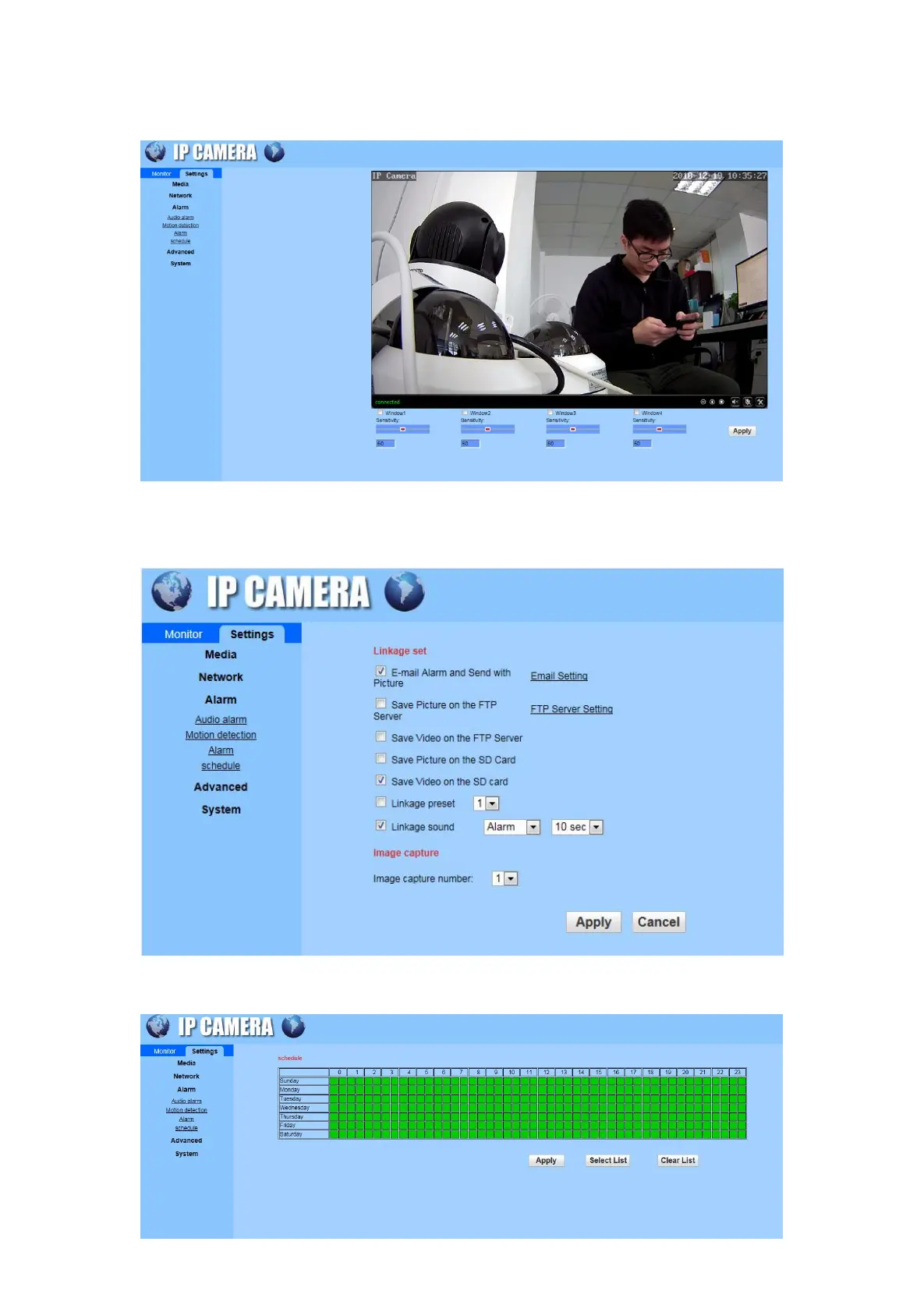 C) Alarm: Email setting method is the same as Phone APP. Set the FTP server setting and Image capture