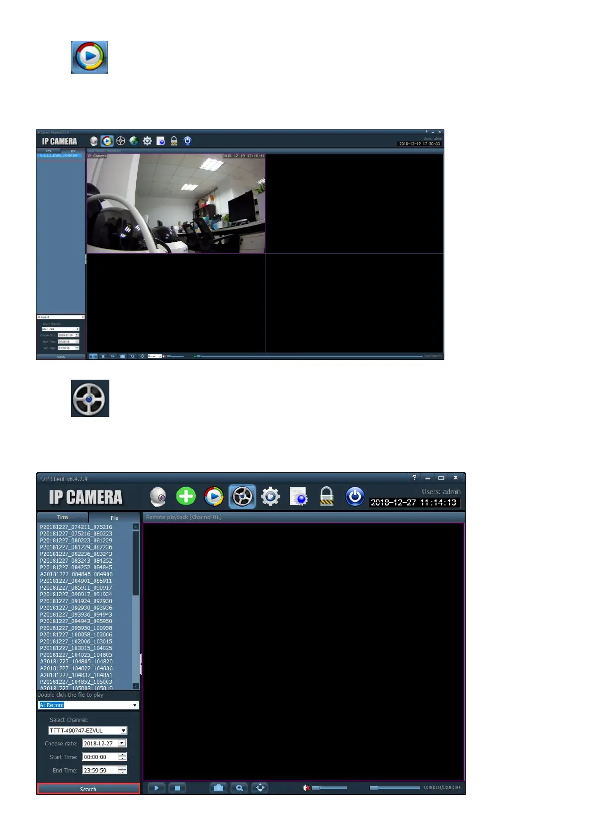 Click “Local Playback”, Select file, channel, time and date to search for local video files. Double-click file to