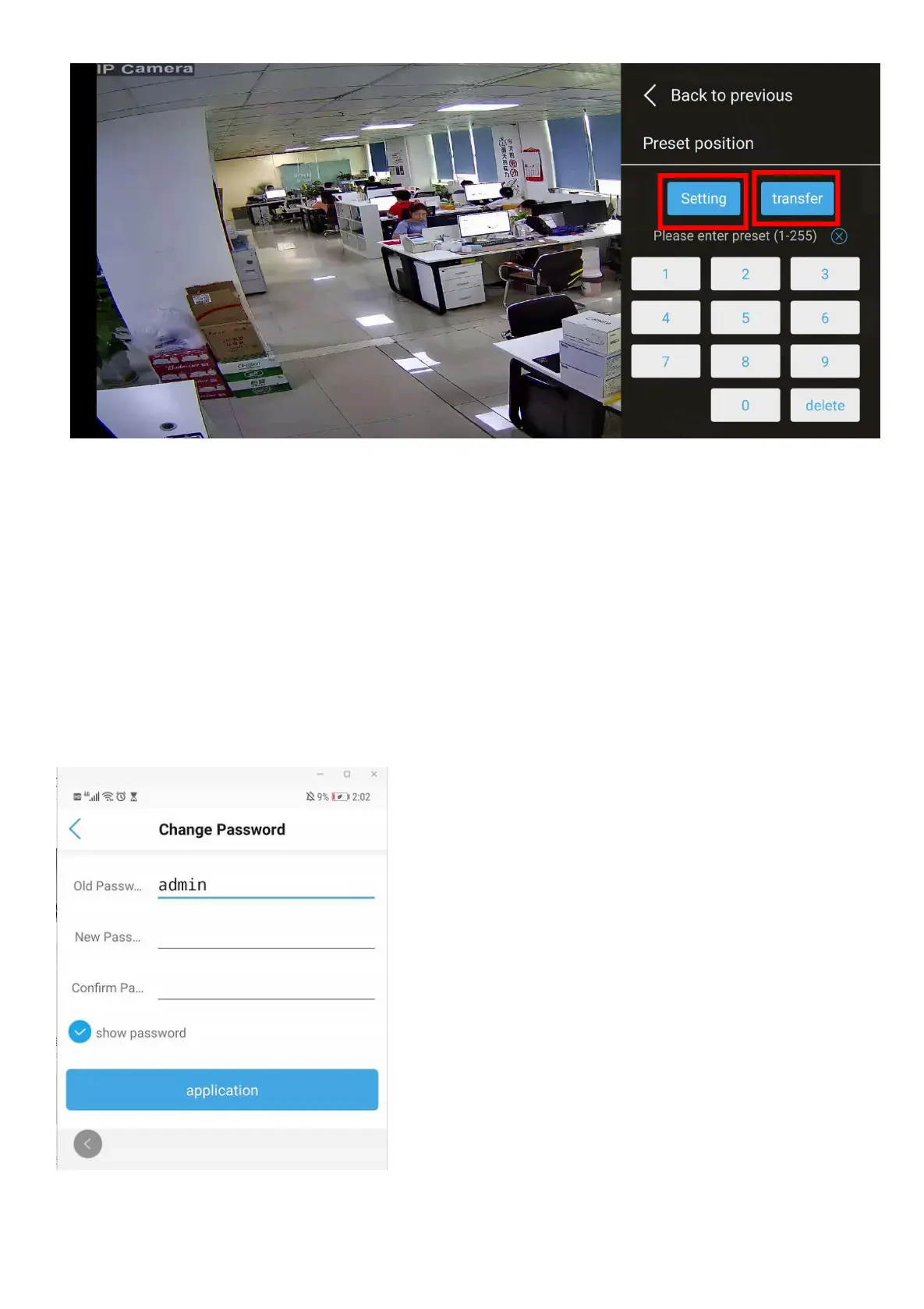 Adjust the camera rotation to the second point you want to monitor on the app; input "2" and Setting;