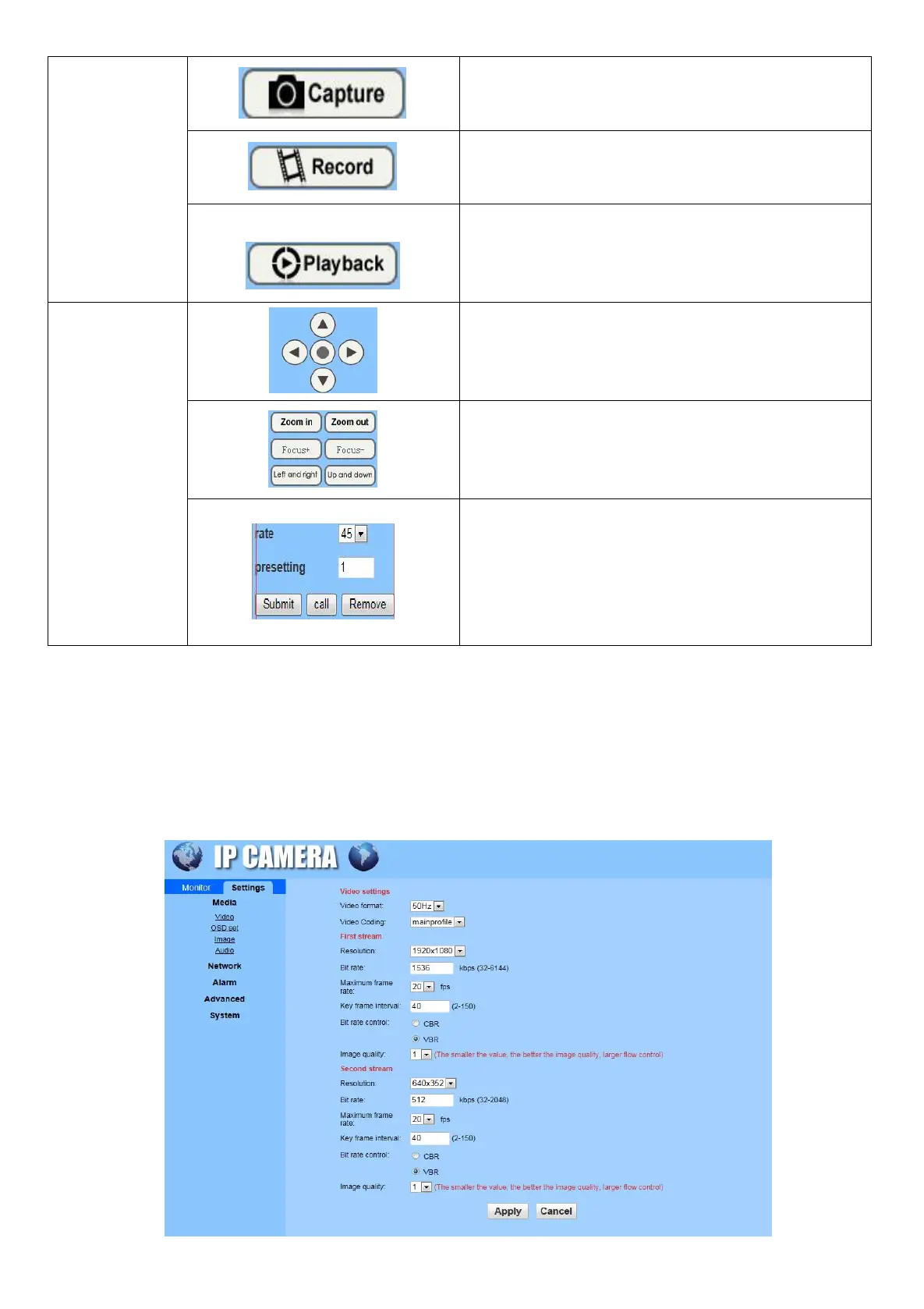 PTZ control operation interface, control the camera to