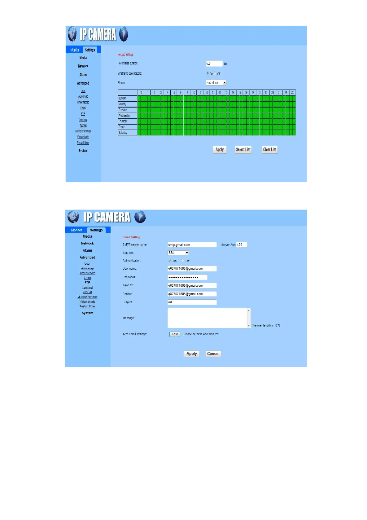 Email Setting: