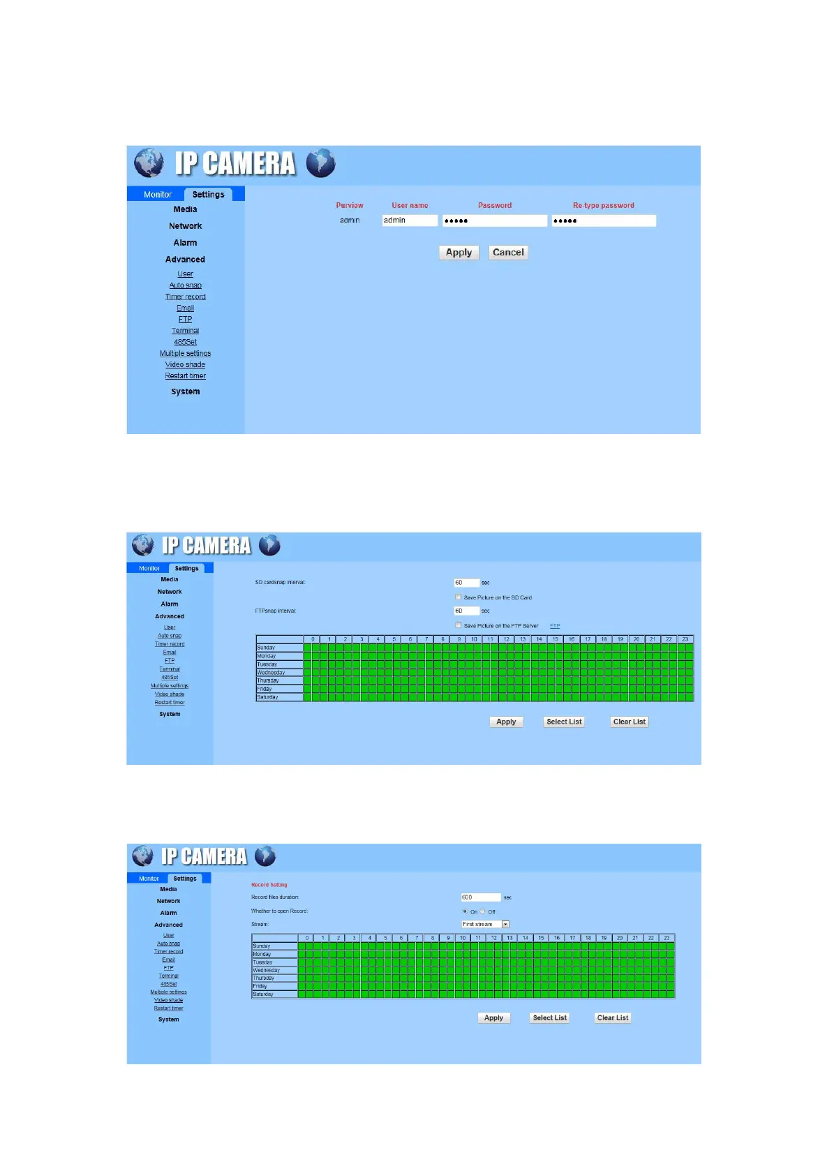 B) Auto snap: Time capture, Choose to set the SD card snap interval or FTP snap interval and save